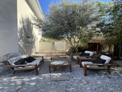 Devant la maison, vous pourrez vous garer sur deux places privatives.