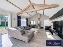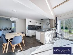 L'Agence Rive Gauche vous propose en exclusivité à Chens-sur-Léman, cette magnifique villa d'architecte de 152m2 habitables pour 241utiles édifiée en 2011 sur un terrain de 1674m2. Elle se compose d'une entrée avec penderie et wc indépendant donnant sur un espace de vie offrant une cuisine entièrement équipée avec table bar ouverte sur l'espace salle à manger/séjour agrémenté d'un poêle à bois, cette pièce de vie de 57m2 offre de très beaux volumes de par son architecture avec plafond cathédrale et profite d'une belle luminosité naturelle grâce aux ouvertures sur la terrasse qu'elle dispose. Nous trouvons également au rez-de-chaussée un espace parentale avec dressing, salle de bain + douche et wc. A l'étage la maison offre 4 chambres supplémentaires et une salle de bain avec wc. Au sous-sol aménagé : une pièce home cinema, poss salle de jeux ou de sport, une buanderie avec point d'eau, une pièce de rangement et un accès au vide sanitaire idéal pour servir de cave. A l'extérieur la maison profite d'une terrasse d'environ 90m2 exposée Sud-Ouest le terrain est piscinable et entièrement clos par une haie végétale, 2 portillons donnent accès à la maison et au jardin. Coté stationnement, un grand garage de 34,76m2 avec accès direct à l'habitation ainsi que 4 places de parking.