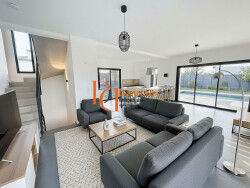 Decultieux Immobiler vous propose en exclusivité, cette villa d'architecte contemporaine de 246 m2, construite en 2020 avec une vue dégagée sur le Val de Saône. Les volumes généreux et très lumineux ont été pensés pour allier modernité, confort et qualité de vie au quotidien. Dès l'entrée avec son vestiaire, un espace de vie de 54m2 avec des baies coulissantes à galandage équipées de BSO donnant sur de larges terrasses, où le soleil et l'ombre échangent leur place tout au long de la journée. La cuisine toute équipée est très fonctionnelle avec son ilôt central, pouvant accueillir confortablement jusqu'à 8 convives. L'espace nuit comprend 5 suites d'environ 15 m2 toutes pourvues de leur propre salle de douche à l'italienne, dont une de 23 m2 avec dressing privatif, en rez de jardin. Pour compléter l'étage, un espace multi-média peut être imaginé en bureau ou en salle de jeux. Le jardin paysagé de 600 m2 entièrement clos accueille une piscine avec son pool house, et un jeu de boules. Les pièces annexes entièrement isolées, ont été pensées pour une salle de cinéma, une salle de sport et une cave à vins, cellier et lingerie. La modularité de cette villa offre de nombreuses possibilités d'aménagement complémentaires : bureau, atelier, pièces de loisirs... Garage attenant pour 2 véhicules avec portail électrique sectionnel. A noter un diagnostic de performance énergétique exceptionnel A !