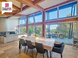 D'inspiration Contemporaine et de Conception Bioclimatique (grandes ouvertures, brises-soleil, panneaux solaires, récupération des eaux de pluie...), cette Villa exposée Sud domine un terrain arboré avec flore méditerranéenne et profite d'un Calme absolu au fond d'une impasse !