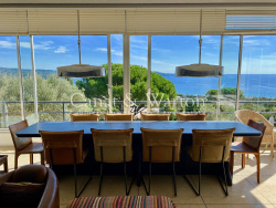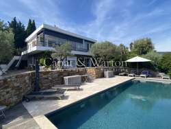 CANAT & WARTON Golfe de Saint Tropez, présente cette magnifique villa moderne offrant une vue panoramique sur la baie Cavalaire. Idéalement située dans le domaine du Parc de Cavalaire, cette villa contemporaine est d'environ 160 m2 sur un terrain arboré de nombreuses essences méditerranéennes d'une superficie de plus de 1 300 m2. Composée par un hall d'entrée, spacieux séjour/ salle à manger présentant une vue mer exceptionnelle, cuisine séparée, 4 chambres, 2 salles de douche, 2 wc & annexes. Exposition Sud-est. Magnifique piscine de 12 m x 4 m avec sa terrasse. Plusieurs places de parking viennent compléter ce bien. Flavien GRANDMAIRE, directeur de l'agence CANAT & WARTON Golfe de Saint Tropez est à votre disposition au 143 Rue du Port 83240 Cavalaire (+33)647524642 canatwartoncavalaire@gmail.com WE SPEAK ENGLISH-WIR SPRECHEN DEUTSCH. Les informations sur les risques auxquels ce bien est exposé sont disponibles sur le site Géorisques www.georisques.gouv.fr. 2 AGENCES IMMOBILIÈRES DANS LE GOLFE DE SAINT TROPEZ: CAVALAIRE ET LA CROIX VALMER CANAT & WARTON Golfe de Saint Tropez presents this magnificent modern villa offering panoramic views of Cavalaire Bay. Ideally located within the Parc de Cavalaire estate, this contemporary villa spans approximately 160 sq m on a landscaped plot of over 1,300 sq m planted with numerous Mediterranean trees. It comprises an entrance hall, a spacious living/dining room with exceptional sea views, a separate kitchen, four bedrooms, two shower rooms, two toilets, and additional rooms. South-east facing. A magnificent 12m x 4m swimming pool with its own terrace completes this property. Several parking spaces are available. Flavien GRANDMAIRE, director of the CANAT & WARTON Golfe de Saint Tropez agency, is at your disposal at 143 Rue du Port, 83240 Cavalaire (+33)647524642 canatwartoncavalaire@gmail.com WE SPEAK ENGLISH-WIR SPRECHEN DEUTSCH. Information on the risks to which this property is exposed is available on the Géorisques website: www.georisques.gouv.fr. 2 REAL ESTATE AGENCIES IN THE GULF OF SAINT-TROPEZ: CAVALAIRE AND LA CROIX-VALMER