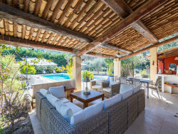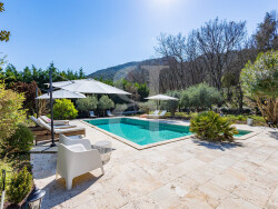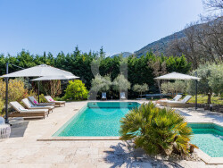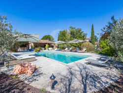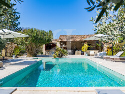 À l'extérieur, tout est réuni pour profiter pleinement de l'art de vivre provençal : piscine, cuisine d'été et salon couvert, multiples terrasses et jardin paysager dans un cadre campagne.