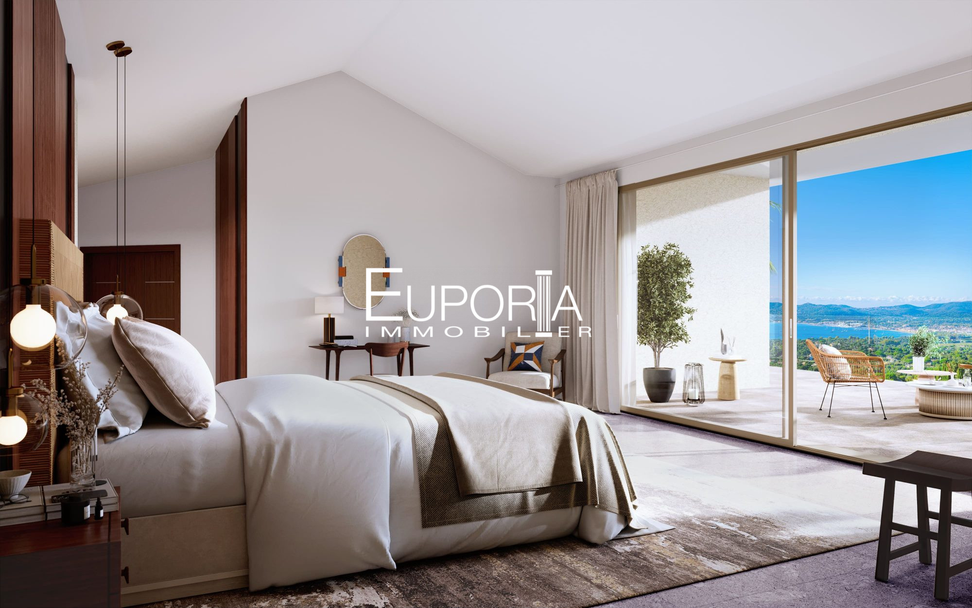 VILLA ET CADRE D'EXCEPTION - Surplombant le golfe de Saint-Tropez, Argent Group Immo vend une villa moderne de 400 m2 aux prestations haut de gamme avec larges terrasses, piscine et garage trois places. Vue mer imprenable, calme absolu, orientée Sud/Ouest, entrée vestiaire, réception de 130 m2, cuisine de 30 m2, cinq masters (avec chacune sa salle d'eau ou bains, placards et dressings), cave, buanderie, six wc... Prix : 6440000 euros