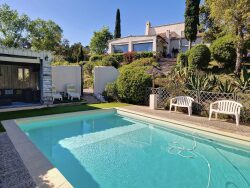 EXCLUSIVITE MLS Un véritable havre de paix en pleine nature sans être isolé. Vous serez à moins de 5 minutes de l'autoroute en voiture, à 10 minutes des commodités et de la gare, à 20 minutes de Sainte-Maxime, à 40 minutes de l'aéroport. Sur un grand terrain arboré d'un hectare sans vis-à-vis, optez pour cette spacieuse maison de 212 m² (Carrez) + dépendances, abri pour 2 voitures, cave, piscine avec son pool house, terrain de pétanque et possibilité d'adhésion au tennis dans le domaine. Au rez-de-chaussée, vous aurez un salon intime avec cheminée, un grand séjour lumineux avec vue dominante à 180° sur le parc du domaine, une belle salle à manger, une cuisine avec son cellier. Au même niveau, vous trouverez une chambre en suite parentale (dressing, salle de bains/d'eau, WC) ainsi qu'une autre chambre avec sa propre salle d'eau. À l'étage, découvrez une mezzanine avec accès à une chambre donnant sur une terrasse tropézienne ainsi que sa propre salle d'eau. À l'extérieur, profitez de grandes terrasses pour vos repas, recevoir vos amis ou vous reposer. Ne perdez pas votre temps à chercher, cette maison avec du potentiel a tout ce qu'il vous faut.