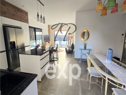 Hérault, Corneilhan 34450. Villa contemporaine d'exception Élégance, confort et art de vivre Découvrez cette somptueuse villa récente de 2024, encore sous garantie décennale, pensée pour offrir un cadre de vie rare où modernité, volumes et sérénité se conjuguent avec élégance. De plain-pied, cette propriété développe 120 m² habitables aux lignes épurées et aux prestations soignées. Dès l'entrée, vous serez séduit par une pièce de vie lumineuse de plus de 48 m², sublimée par deux grandes baies vitrées qui prolongent naturellement l'espace vers la terrasse et la piscine. La cuisine américaine, entièrement aménagée et meublée avec des équipements de belle gamme, s'intègre harmonieusement à cet espace convivial, idéal pour recevoir et partager. L'espace nuit offre trois chambres, dont une superbe suite parentale avec salle d'eau privative, WC et dressing. Une salle de bain élégante, équipée à la fois d'une douche et d'une baignoire, ainsi qu'un WC indépendant, complètent ce niveau. Une buanderie fonctionnelle et un garage spacieux de 20 m² viennent parfaire le confort intérieur. À l'extérieur, le charme opère immédiatement. Une pergola élégante, une piscine à nage de 8,80 x 2 m, habillée de carreaux de Bali, et un jardin paysagé sans entretien composent un véritable havre de paix. L'ensemble est sans vis-à-vis, offrant une intimité totale et une atmosphère propice à la détente. Idéalement située, cette villa bénéficie de la proximité immédiate des commerces, tout en restant à seulement 10 minutes de Béziers, 15 minutes des autoroutes A9 et A75, et 20 minutes des plages méditerranéennes. Un bien rare, alliant prestations contemporaines, emplacement stratégique et qualité de vie, destiné à ceux qui recherchent une résidence élégante où il fait bon vivre, aujourd'hui et pour longtemps. Prix de vente : 435 000 euros honoraires à la charge vendeur. DPE : non soumis GES : non soumis