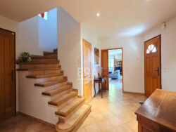 Dans un cadre paisible et verdoyant, découvrez cette villa orientée plein sud, offrant une vue imprenable sur les environs. D'une surface habitable d'environ 150 m² sur un terrain de 1 382 m², elle saura vous séduire par ses volumes et sa luminosité. Elle se compose de trois chambres, d'un séjour lumineux, d'une cuisine aménagée, d'un bureau, d'une salle de bain et de deux WC. Le confort est assuré par un système de chauffage performant combinant pompe à chaleur air/air, radiateurs électriques, ainsi qu'un insert bois. Les extérieurs ne sont pas en reste : vous profiterez d'une terrasse de 56 m² idéalement exposée, d'un double garage et d'un parking. Proche des commerces et des commodités, ce bien rare est idéal pour une vie au calme, tout en restant connecté à l'essentiel. Maison prête à vivre, sans travaux à prévoir.