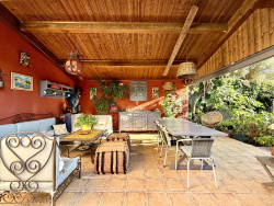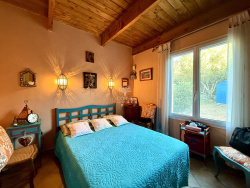 Située dans un environnement calme et ouvert sur la campagne, cette propriété d'environ 122 m2 sise sur une parcelle de 2 338 m2 allie confort, tranquillité et vue panoramique sur les montagnes. La partie principale offre une belle pièce de vie avec poêle à bois et un plafond cathédrale donnant sur une véranda orientée plein Ouest, une cuisine ouverte finalise les espaces de vie. Deux belles chambres avec rangements, une salle d'eau ainsi qu'un WC séparée compose le côté nuit. Cette villa sans vis-à-vis est un véritable havre de paix, le terrain est aménagé de plusieurs espaces. Une terrasse couverte et sa cuisine extérieur permettent de profiter de l'extérieur tout au long de l'année. Une piscine de forme libre, ainsi qu'un potager finalisent le jardin et disposent d'un forage. Pour plus d'indépendance, un studio aménagé permet d'accueillir amis, famille ou avoir un rendement locatif. Proche de toutes les commodités ainsi que des commerces, cette villa sera vous charmer. Les informations sur les risques naturels auxquels ce bien est exposé sont disponibles sur le site Géorisques : www.georisques.gouv.fr