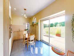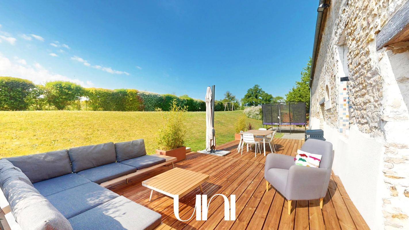 Quant à l'espace privatif au 1er étage, les propriétaires l'ont également intégralement rénové avec goût sur 2 niveaux, lui conférant une atmosphère moderne mais authentique, exploitant avec subtilité le cachet de la pierre, des tomettes, des boiseries, du parquet en chêne. Tout y est jusqu'aux radiateurs sculptés en fonte pour révéler le charme de cette magnifique demeure. Elle se compose au 1er étage d'un grand hall d'entrée desservant un salon-séjour, une très grande cuisine de 26 m², baignée dans la lumière avec cheminée en pierre décorative ouverte sur la terrasse de 80 m² au sud, avec jacuzzi. Pour compléter, arrière cuisine, une chambre/bureau ou salle de jeux, un WC. Au 2ème étage, le couloir avec des placards dessert une grande chambre avec salle d'eau privative, une autre chambre avec dressing, une salle d'eau avec WC séparés et une troisième chambre avec coin bureau. Informations complémentaires : - Jacuzzi. - Fibre optique - 7 chambres au total. - Chauffage par POMPE A CHALEUR + chauffage électrique (3ème étage). - Taxe foncière 2025 : 2613 euros. - Toiture en tuiles anciennes. - 2 ballons d'eau chaude électriques. - Huisseries bois + PVC avec volets solaires en étage. - Interphone. - Tout à l'égout. - Tous commerces de proximité à environ 1 Km. Mer et plage de Courseulles/Mer à 30 minutes.Si vous recherchez un bien bénéficiant de beaucoup de cachet avec un jardin d'une surface raisonnable afin de ne pas avoir à subir son entretien, que vous souhaitez profiter du calme de la campagne sans être isolés d'une grande ville, alors, cette villa est faite pour vous!