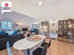 L'entrée s'ouvre sur un spacieux salon-séjour lumineux, avec belle hauteur sous plafond et cheminée insert, offrant un espace convivial et chaleureux.
