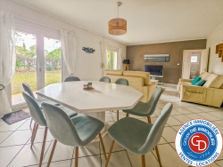 MANDAT EXCLUSIF Taussat-Les-Bains, Le Groupe DIÉ IMMOBILIER a l'honneur de vous présenter à la ventre une très belle villa (115 M2 avec garage) bien entretenue de plain-pied avec 3 chambres, édifiée sur une parcelle de terrain d'environ 850 m2 avec garage et piscinable. Le tout situé au calme, proche des plages, du port, des commerces et de toutes les activités. Puit foré, chauffage électrique récent et de dernière génération (connexion via une application pour gérer chaque radiateur, si besoin) Garage, salon, séjour, cuisine indépendante aménagée, 3 chambres avec placards dont 1 avec sa salle d'eau attenante et ses wc séparés, salle de bains et wc indépendant. Situé à proximité de plusieurs commodités, cette villa vous permettra de profiter pleinement de la vie locale. seulement 10 minutes à pied, vous trouverez 2 arrêts de bus. En voiture, vous accéderez à 10 minutes à 3 crèches, 6 écoles maternelles et élémentaires, ainsi qu'un collège. Pour vos besoins quotidiens, une alimentation générale se trouve à 10 minutes à pied. 4 restaurants sont accessibles à 15 minutes de marche. Pour les amoureux de la nature, 1 parc et 1 jardin se trouvent à 10 minutes en voiture. Des possibilités d'agrandissement avec une emprise au sol des constructions ne pouvant pas excéder 20% de la superficie totale du terrain. D'autres photos, un plan, ainsi qu'un descriptif détaillé et complet du bien sont à votre entière disposition sur simple demande. Groupe DIÉ IMMOBILIER - Guillaume DIÉ - Agent Immobilier - 0686289672 - guillaume@groupe-die-immobilier.com