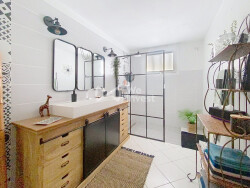 Confortable, elle dispose de la climatisation dans toutes les pièces, chauffage au sol, d'un portail électrique...