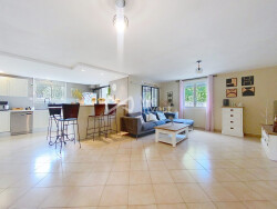 Sarah au O6.23.15.25.39 : Venez découvrir cette jolie villa de plain pied de 130m2 hab. composée d'une pièce de vie agréable avec cuisine équipée ouverte et de ses 4 chambres.