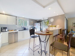 Confortable, elle dispose de la climatisation dans toutes les pièces, chauffage au sol, d'un portail électrique...