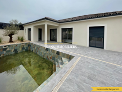 Votre agence BIENS IMMOBILIERS BERGERAC vous propose cette magnifique villa de plain pied d'environ 123 m2 à BERGERAC. A l'intérieur vous y trouverez un grand Séjour/Salle à manger, 3 chambres dont une suite parentale avec salle d'eau et dressing, une salle d'eau indépendante, deux WC et un cellier. A l'extérieur, une terrasse couvert, une piscine carrelé de 9x4 avec cascades et pool house avec douche et WC viennent compléter ce bien. la mise en pelouse sera faites. Cette maison vous est présentée en partenariat avec un professionnel de la construction ce qui vous permet d'apprécier les frais de notaires réduits à environ 3%. N'attendez plus pour prendre RDV. « Les informations sur les risques auxquels ce bien est exposé sont disponibles sur le site Géorisques : www.georisques.gouv.fr ». Contactez-nous au 05 53 23 46 62 ou venez nous retrouver au 68 bis rue clairat à Bergerac. Découvrez tous nos biens sur notre SITE INTERNET : http://biensimmobiliersbergerac.com