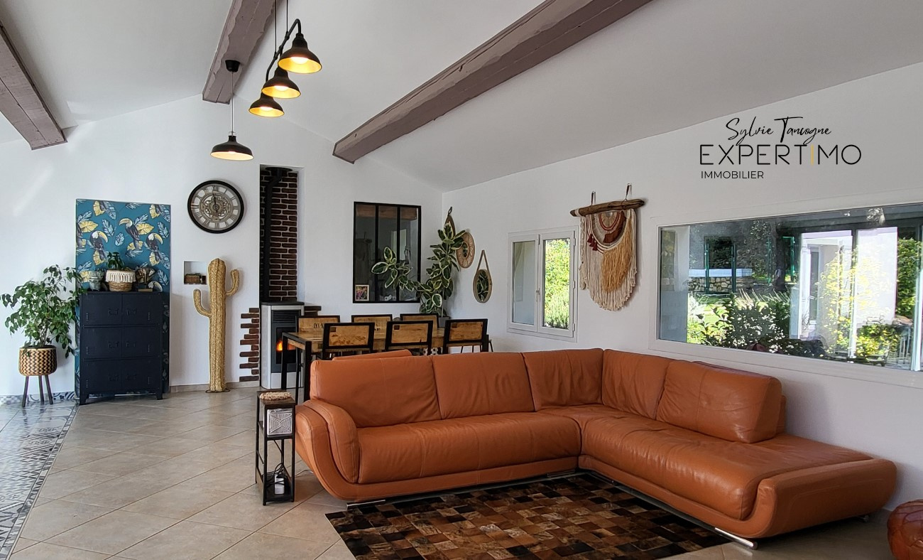 Villa contemporaine de plain-pied, à l'abri des regards, sur un versant sud-ouest avec piscine chauffée, confort et vues imprenables. Parfaitement située sur une petite colline, en lisière d'un bourg avec commerces et commodités, cette superbe villa neuve de plain-pied bénéficie d'une vue exceptionnelle sur les vignobles environnants et sur un magnifique paysage vallonné et Méditerranéen. Ici on profite chaque jour, dans un environnement calme et privilégié, de couchers de soleil magnifiques. La propriété est bénéficiaire d'une situation centrale et se situe à seulement 17 kilomètres de Béziers et de son aéroport international, à 30 kilomètres des plages de la Méditerranée et à 19 kilomètres de la charmante ville historique de Pézenas. Un emplacement parfait alliant tranquillité et accessibilité. Conçue avec une attention particulière portée au confort et à la luminosité, la villa offre un cadre de vie moderne et élégant. Entièrement de plain-pied, elle comprend un très grand séjour de type « open space », un home cinéma, une salle de jeux, quatre chambres spacieuses et quatre salles d'eau / bains raffinées, garantissant intimité et confort pour les propriétaires ainsi que pour les invités. La maison est équipée de tout le confort contemporain. Implantée sur un magnifique terrain de 1.780 m², au calme et facile d'entretien, la propriété offre une situation privilégiée, à l'abri des regards. Les vastes terrasses vous permettent de profiter pleinement des vues et de l'art de vivre méditerranéen. Le portail électrique, le grand garage carrelé, le terrain de pétanque, le potager et bien sûr la piscine chauffée et équipée d'un système de nettoyage à l'électrolyse complètent l'ensemble. Une propriété rare qui combine emplacement, confort, intimité et vues exceptionnelles idéale en résidence principale ou éventuellement comme résidence secondaire de prestige. Offre exceptionnelle. Informations supplémentaires sur demande. Visites sur rendez-vous.