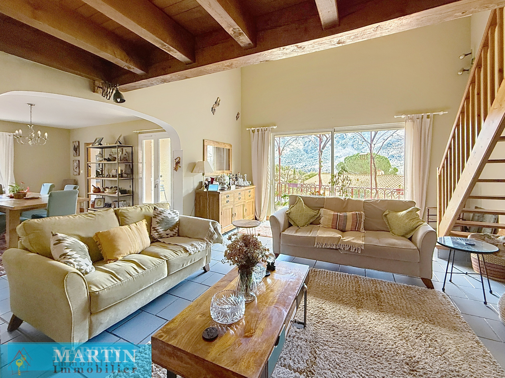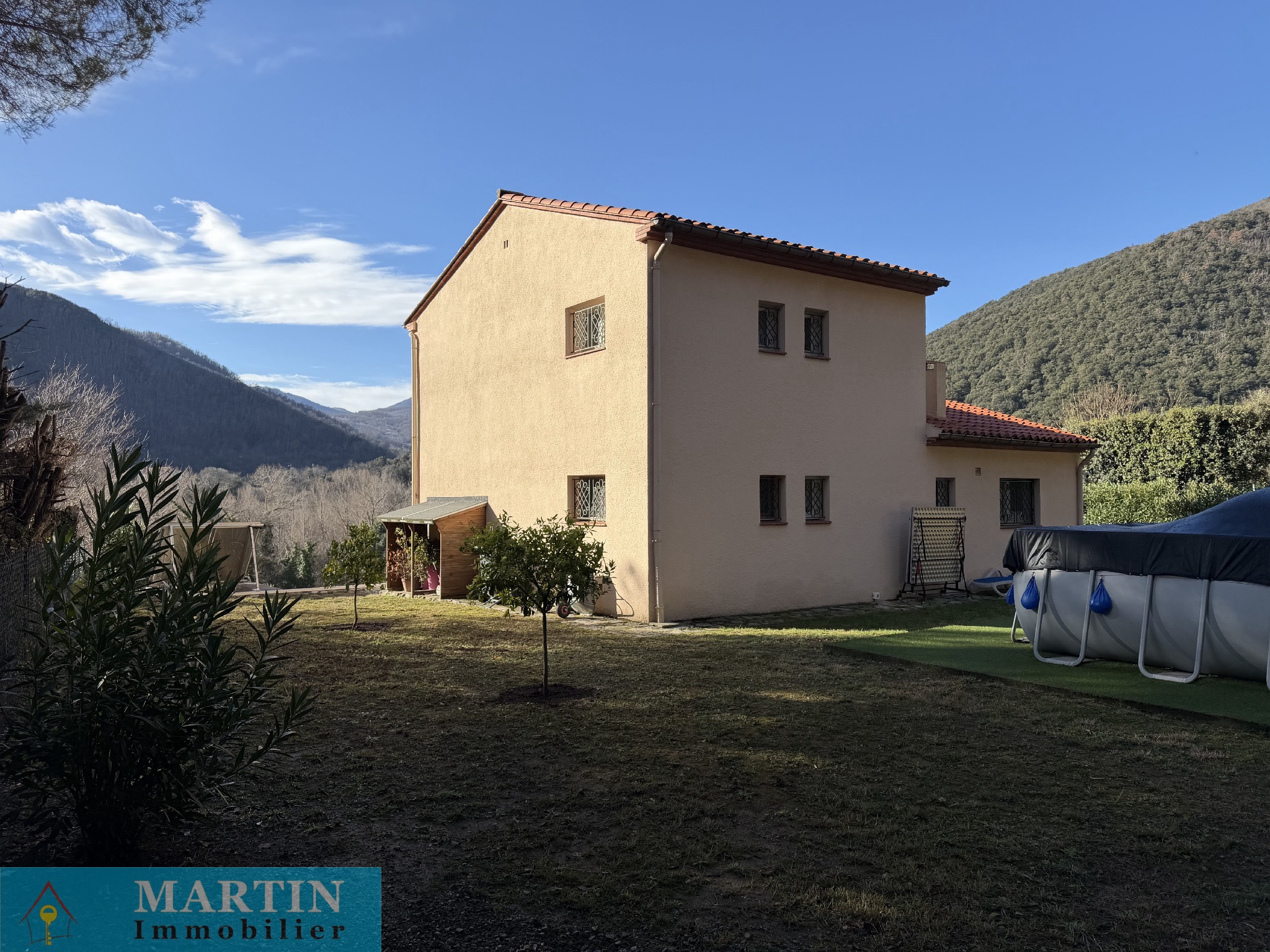 Dans un écrin de lumière, au coeur d'un environnement paisible et prisé d'Arles-sur-Tech, se dévoile cette villa moderne aux prestations remarquables. Édifiée sur un vaste terrain ensoleillé, elle offre un spectacle naturel saisissant, avec une vue imprenable sur les montagnes et les vallées environnantes. Dès l'extérieur, le charme opère : une spacieuse terrasse prolonge les espaces de vie et invite à la contemplation, tandis que la piscine extérieure promet des instants de détente absolue dans un cadre privilégié. L'intérieur révèle une architecture pensée avec raffinement et générosité. Le séjour, baigné de lumière et sublimé par de magnifiques hauteurs sous plafond, s'ouvre sur un balcon intérieur au caractère unique. Cinq chambres accueillantes complètent ce lieu de vie, offrant confort et intimité à toute la famille. Chaque espace a été conçu pour allier esthétisme et fonctionnalité, avec de nombreux rangements intégrés. Le garage, aujourd'hui aménagé en atelier, constitue un espace modulable aux multiples possibilités, la porte d'origine ayant été conservée pour une transformation aisée selon vos projets. Soucieuse de sa performance énergétique, la propriété est équipée d'installations modernes alliant confort et efficacité : insert, poêle à granulés, climatisation réversible, chauffe-eau thermodynamique ainsi qu'une installation solaire performante composée de 22 panneaux, dont la majorité est dédiée à la revente d'électricité, tandis que les autres alimentent le système de production d'eau chaude. À l'extérieur, le jardin se présente comme un véritable havre de verdure. Les arbres fruitiers abricotiers, pêchers, poiriers et pruniers offrent une abondance gourmande, idéale pour savourer l'art de vivre méditerranéen. L'arrosage est assuré par un canal longeant la propriété, complété par une pompe à eau, garantissant une gestion à la fois pratique et responsable. Idéalement située entre mer et montagne, dans une commune vivante et authentique, cette villa incarne une parfaite harmonie entre nature, confort et élégance. Une propriété rare, destinée aux amateurs de biens d'exception et de douceur de vivre. « les informations sur les risques auxquels ce bien est exposé sont disponibles sur le site Géorisques : www.georisques.gouv.fr »
