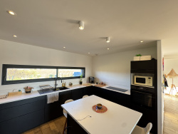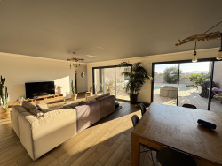 ANNONAY IMMOBILIER vous propose une superbe villa moderne de 2020. Entre Annonay et la vallée du Rhône, nord Ardèche, en bordure de hameau très calme, cette villa de standing offre la paix et une vue panoramique sur la campagne à ses occupants. Construction traditionnelle de plain-pied, 176 m2 habitables sur un terrain de 973 m2 clos, pour cette villa de conception originale. Un magnifique espace jour avec un séjour-salon de 48 m2 et une cuisine équipée ouverte de 13 m2, bénéficiant de deux grandes baies vitrées pour accéder à la terrasse et piscine, ainsi qu'une salle de jeu, bibliothèque de 28 m2 avec baies panoramiques. Un côté suite parentale composé d'une chambre avec accès terrasse, un coin dressing, une belle salle d'eau et douche italienne, un wc. Et à l'opposé l'espace chambres enfants avec deux chambres, une salle de bains douche italienne et baignoire, et un wc. Cette maison est chauffée par aérothermie au sol, offrant un DPE : A et un GES : A. La villa en forme de U permet de profiter d'une vaste terrasse en bois protégée et exposée sud. Une piscine 3.5*9 traditionnelle avec volet roulant et chauffage PAC complète ce très bel espace extérieur. Cette propriété est rare, elle bénéficie de prestations de qualité et d'un emplacement recherché.