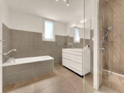 ? Salle de bains récente (extension réalisée en 2019), équipée d'une baignoire et d'une douche