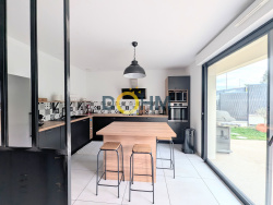 Villa achevée en 2021 de type F4 avec terrain, toit terrasse et vie de plain-pied. Cette propriété entièrement équipée vous propose : En rez-de-jardin : - un bel espace de vie agréable et moderne de 49m2 proposant un coin salon / séjour et une cuisine semi-ouverte (par verrière d'artisant ferronnier) entièrement équipée avec espace repas, donnant sur baie-vitrée et terrasse. - deux chambres de bonnes tailles, au calme, chacune avec des placards menuisés en pleine-hauteur - une salle d'eau avec douche à l'italienne spacieuse, un wc séparé avec lave-main. - dégagement avec placard de rangement. En rez-de-rue : - une seconde entrée avec dégagement permettant d'accueillir un coin bureau, un placard - une troisième chambre, elle aussi avec placard - une salle de bain avec baignoire et wc En plus : - un garage double (en enfilade) de 39m2 avec coin atelier ou buanderie, porte motorisée et isolée. - une cave - un emplacement de stationnement privatif, ouvert. Le terrain est entièrement clos (canis en composites anthracite) et accueille quelques arbres la terrasse est orientée Sud-Ouest. Les huisseries sont en aluminium RAL 7016. DPE A / GES A. Le chauffage est assuré par une chaudière mixte gaz / aérothermie. La pièce de vie est également climatisée pour un confort optimal.