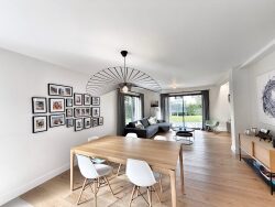 Édifiée sur un terrain clos et arboré d'environ 700m², cette propriété séduit par ses volumes, sa luminosité et le soin apporté à ses finitions.