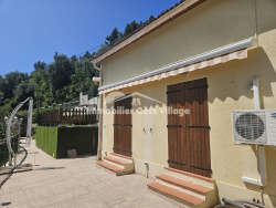 Une villa individuelle à 279000EUR !!!! A saisir. A proximité de Bendejun La Feuilleraie, Route du soleil à Coaraze, village classé comme l'un des plus beaux et ensoleillé de France, découvrez cette villa individuelle de 84.28 m2 habitables ( 71.39 m2 en loi Carrez) + 40m2 de surfaces annexes sur 2 niveaux implantée sur une parcelle de 1000m2 (les parcelles se terminent au milieu d'une rivière qui est plus de 10m en contrebas de l'habitation) Une terrasse d'une superficie de plus de 150m2 exposée Sud Est, au calme, agrémentée d'une attrayante pergola permet d'accéder à une piscine hors sol avec une plage terrasse surélevée (le remplacement du liner est à minima nécessaire) . Une cuisine d'été a egalement le mérite d'exister ainsi que de nombreuses petites dépendances. Au RDC, un grand hall avec baie vitrée dessert la cuisine independante, le WC, la salle d'eau, la pièce à vivre puis une chambre. A l'étage, vous accéderez à 2 chambres mansardées avec Velux ainsi qu'à 2 pièces annexes (Une à usage de bureau, l'autre actuellement brute de construction pour une surface d'env 25m2 avec un bon potentiel d'aménagement). Climatisation reversible dans toutes les pièces, raccordement à l'asainissement collectif (avec pompe de relevage), volets roulant electriques, double vitrage, panneaux photovolotaiques générant 1300EUR de revenus annuels. Ce bien a fait l'objet d'une reconstruction suite à un sinistre incendie en 2008. Cette villa nécessite des travaux de rafraichissement, pour autant elle présente un potentiel indeniable. 2 accès sont possibles pour accéder à la villa (par la terrasse avec une servitude de passage piéton ou par un escalier extérieur) 3 places de parkings sont possibles à l'intérieur de la propriété ainsi qu'une autre en bordure de route Foncier maitrisé 800EUR par an environ. A visiter absolument, idéal 1ere acquisition pour des familles. Les informations sur les risques auxquels ce bien est exposé sont disponibles sur le site Géorisques : www.georisques.gouv.fr