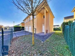 Mélanie GUEYFFIER, experte immobilier sur le secteur du Pays de Gex et alentours, est ravie de vous présenter cette villa jumelée située dans un lotissement paisible et recherché de Saint-Genis-Pouilly, au coeur du secteur de Pregnin. Construite en 2010 sur une parcelle de 237 m² par CAPELLI, cette maison de 128 m² de surface totale (111 m² habitables) comprend 4 chambres, une cuisine indépendante, un vaste séjour lumineux, une salle d'eau, une salle de bains, deux WC indépendants, un garage, une terrasse, un jardin clos, ainsi que de nombreux rangements.
