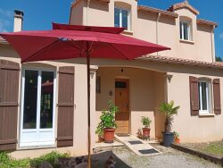 A l'abri des regards, nichée dans son écrin de verdure, cette villa lumineuse de 2003, édifiée sur sous-sol, comprend : Une large entrée avec poêle à granulés ouverte sur un séjour avec cheminée-insert, une cuisine aménagée avec îlot central, une chambre avec salle d'eau en suite (douche italienne et wc). De la cuisine, on communique avec un logement de 40 m² habitables incluant de plain-pied un séjour (poêle à granulés) avec une kitchenette, une chambre avec placard et une salle d'eau en suite avec wc. L'étage dispose d'une grande salle de bains avec douche italienne également, un wc, et trois belles chambres. Le sous-sol distribue un garage (60 m²), un coin buanderie, un coin atelier, une cave et une pièce borgne. L'extérieur bénéficie d'un portail automatique, de robinets extérieurs, d'un bassin, de fruitiers (pommes, prunes, cerises) et d'une végétation très variée. HABITABLE DE SUITE TOUT A L'EGOUT POMPE A CHALEUR AIR/AIR 2 UNITES CHAUFFAGE ELECTRIQUE AU SOL POUR LE RDC CONVECTEURS A L'ETAGE DEUX POÊLES A GRANULES