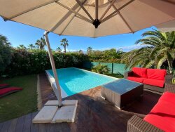 Prestations exclusives, piscine, sauna, cinéma, salle de sport, vélos, paddle Idéalement située en 1° ligne mer dans le quartier prisé de Villeroy, la Villa Frankie est le lieu idéal pour se relaxer et profiter de la grande plage de sable de Sète. Pouvant accueillir jusque 10 personnes, la villa de 400m2 offre des prestations haut de gamme : de beaux volumes ouverts, climatisation, piscine, salle de sport, cinéma, sauna et chaque chambre possède TV, dressing et salle de bain indépendante. A l'extérieur, grand espace avant permettant de recevoir jusque 5 véhicules ainsi qu'une douche pour vous débarrassez totalement du sable à votre retour de la plage. A l'arrière de la maison, vous pourrez vous prélasser dans le jardin paysagé parfaitement entretenu, équipé d'une grande terrasse en bois, transats, d'un barbecue WEBER et d'une piscine chauffée à débordement. En rez de jardin : entrée lumineuse donnant sur un grand espace de vie avec espace salon, baby foot, salle à manger et cuisine ouverte, le tout entièrement ouvert en accès direct sur la terrasse et la piscine pour un mode de vie dedans / dehors. Le RDC dispose également s'une suite avec dressing et belle salle de douche. A l'étage, 3 chambres disposant chacune de son dressing et salle de douche ou salle de bains, dont 2 chambres avec vue incroyable sur la mer pour un spectacle époustouflant dès le réveil. Toutes les chambres sont équipées de literie haut de gamme, sèche-cheveux, et sont préparées pour votre arrivée avec linge de maison, peignoirs, chaussons, et produits l'Occitane en Provence. Sous-sol parfaitement équipé pour vos loisirs avec salle de sport avec douche, sauna et salle de cinéma pour le plus grand plaisir des petits et des grands! Le sous-sol dispose également d'une 5° chambre d'appoint indépendante (pièce aveugle sans fenêtre) avec sa salle de douche et toilettes. Au garage, vous trouverez à votre disposition de nombreux vélos, ainsi que 2 kayaks et 1 paddle pour profiter pleinement de vos vacances. Ménage inclus à votre départ
