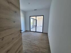 L'espace de vie principal, spacieux et ouvert, est baigné de lumière grâce à une grande baie vitrée à galandage qui s'efface entièrement pour laisser place à une transition fluide entre l'intérieur et l'extérieur. La cuisine aménagée s'intègre naturellement à la pièce, permettant de cuisiner tout en profitant de la vue sur la terrasse.