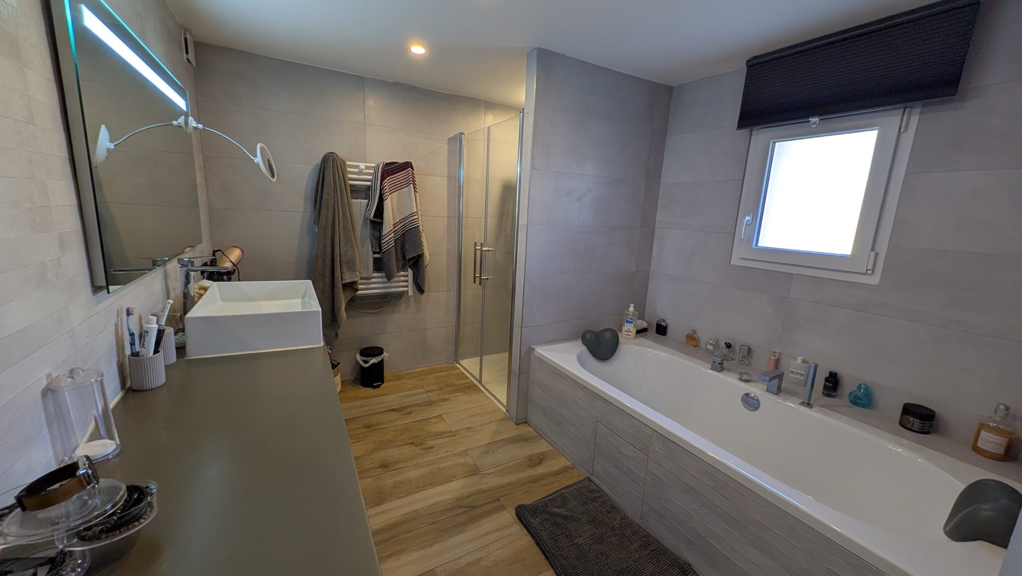 Découvrez cette magnifique villa contemporaine de plain-pied, offrant un cadre de vie agréable et fonctionnel. Vous serez immédiatement séduit par son vaste séjour avec cuisine ouverte de 60 m², baigné de lumière, idéal pour les moments de convivialité. Côté nuit, la maison dispose de deux chambres et d'un bureau pouvant être transformé en chambre