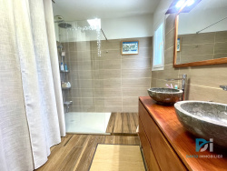 L'agence David Immobilier a le plaisir de vous présenter, à l'entrée du village de Servian, dans un quartier résidentiel calme et recherché, cette villa individuelle de plain-pied, quatre faces, construite en 2001, qui offre un cadre de vie à la fois paisible, moderne et pratique. Située à proximité immédiate du Super U et de toutes les commodités locales, elle bénéficie d'une belle parcelle arborée de 900 m2, parfaitement aménagée, sans aucun vis-à-vis. La maison développe 143 m2 habitables environ, avec un agencement soigné et fonctionnel. Dès l'entrée, on accède à un hall qui dessert une cuisine séparée, entièrement équipée, semi-ouverte sur un vaste séjour salon lumineux, orienté vers l'extérieur. Ces pièces de vie s'ouvrent directement sur la terrasse surélevée et la piscine, créant un bel espace de convivialité. Un couloir dessert trois chambres confortables, une salle d'eau refaite à neuf, des WC séparés ainsi qu'une buanderie avec accès direct au garage. À l'étage, une suite parentale indépendante complète l'ensemble avec sa propre salle d'eau et ses WC, offrant intimité et espace. Côté confort, la maison a été entièrement modernisée depuis 2020 : installation de volets roulants électriques centralisés reliés à un système domotique, pompe à chaleur centrale air - eau, climatisation réversible au rez-de-chaussée et à l'étage, et huit panneaux solaires en autoconsommation pour optimiser la consommation énergétique. Une alarme avec vidéosurveillance, connectée au smartphone, sécurise la maison. Les extérieurs sont un véritable atout : un jardin arboré, agrémenté d'une couenne avec des arbres fruitiers, s'organise autour de la piscine, avec une terrasse soignée, une cuisine d'été entièrement équipée, et un terrain de pétanque, parfait pour recevoir. L'intimité est totale grâce à de hautes haies végétales longeant les clôtures, garantissant aucun vis-à-vis. Un carport permet de stationner deux véhicules, avec également un emplacement adapté pour un camping-car, et une prise Green'Up est installée pour les véhicules électriques. Le tout est complété par un garage avec mezzanine de rangement, un portail extérieur motorisé, ainsi que des gouttières. Située à Servian, commune dynamique dotée de toutes les infrastructures nécessaires -- écoles, collège, services de santé, commerces, vie associative -- la villa se trouve à moins de 15 minutes de Béziers et bénéficie d'un accès rapide à l'autoroute A75. Ce bien, rare sur le secteur, offre une combinaison idéale entre prestations haut de gamme, autonomie énergétique, intimité, confort intérieur et qualité de vie en extérieur. Honoraires charge vendeur Les informations sur les risques auxquels ce bien est exposé sont disponibles sur le site Géorisques : www.georisques.gouv.fr