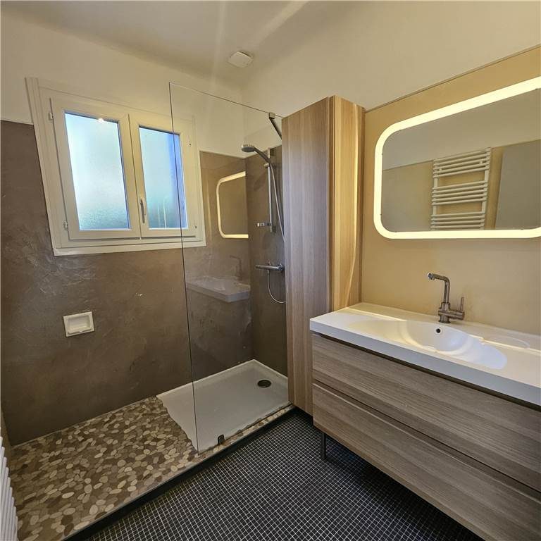 L'agence Le TUC IMMO de Bollène vous propose cete villa neuve en RT 2020 située à 15/20 minutes à pieds du centre ville de Saint Paul 3 Châteaux. En rez de chaussée vous trouverez une entrée avec placard, une pièce de vie avec climatisation et cuisine toute équipée et un cellier avec WC. Le 1er étage dispose d'un hall desservant deux chambres avec placard et climatisation et une salle d'eau avec WC. Cette maison est aux normes PMR et climatisée dans toutes les pièces. Elle propose aussi une jolie terrasse de 17,5 m2, un jardin et parkings privatifs! Pour la visiter vous pouvez nous joindre au 0490342316! A très bientôt LOYER : 980 EUR hors charges DEPOT DE GARANTIE: 980 EUR Honoraires quote part locataire : 536.80 EUR Le TUC IMMO BOLLENE 11 avenue Pasteur Retrouvez toutes nos annonces sur www.bollene.letuc.com Les informations sur les risques auxquels ce bien est exposé sont disponibles sur le site Géorisques : www.georisques.gouv.fr