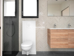Le rez-de-chaussée accueille également une buanderie fonctionnelle ainsi qu'une élégante suite parentale avec salle d'eau privative. Cette dernière bénéficie d'un accès direct à la terrasse et au jardin, offrant un véritable prolongement vers l'extérieur et un confort de vie particulièrement appréciable au quotidien.