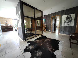 GANNAT (proche Accès A71) Villa d'architecte de 200m2 habitables sur Parc verdoyant de 4 500 m2 clos / Terrasses / Piscine sans aucun vis à vis et Pool house / Allées goudronnées / Au RDC : Hall d'entrée / Cuisine semi-ouverte sur espace repas et salon / Atelier d'artiste ou bureau / Suite parentale avec dressing, salle de bain , WC / À l'étage : trois chambres / Salle d'eau avec WC / Buanderie et sanitaires / Cave à vin climatisée / Dépendance de 110m2 au style « Cabane Canadienne » / Maisonnette en pierre / Garage et carport / Chauffage au sol ( gaz) / Climatisation réversible / Tout à l'égout / Taxe Foncière 3220EUR.
