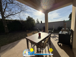 AM2935 15 min au sud de VIENNE (38200)Sur les hauteurs de la commune prisée de CHONAS-L'AMBALLAN L'agence SIT IMMOBILIER vous propose à la vente et en exclusivité cette villa de plain-pied, édifiée en 2012, d'environ 122 m2 habitables, sur un terrain clos et arboré de 810 m2. La maison vous offre un hall d'entrée avec placard, une cuisine équipée ouverte sur la salle de séjour avec cheminée, donnant sur les terrasses, quatre chambres avec placards, une salle de bains (baignoire et douche), ainsi qu'un wc indépendant. Attenant et communiquant, un garage avec coin buanderie. Vous serez séduit par sa luminosité, ses nombreux rangements, son calme, ainsi que par l'atmosphère agréable qui s'en dégage. Chauffage : Plancher chauffant électrique dans les pièces de vie et radiateurs dans la partie nuit. La maison dispose d'une borne de recharge pour véhicule électrique. Terrain plat, entièrement clos et arboré, avec cabane de jardin. À seulement quelques minutes du nouvel échangeur de VIENNE SUD et de la gare SNCF des Roches-de-Condriu, dans un petit hameau au calme, cette maison bénéficie d'un emplacement idéal. DPE : C Prix affiché honoraires d'agence inclus, à la charge du vendeur. « Les informations sur les risques auxquels ce bien est exposé sont disponibles sur le site Géorisques : www.georisques.gouv.fr »