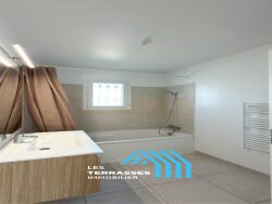 Découvrez cette villa récente de 80 m², construite en 2021, offrant un cadre de vie moderne et confortable sur un terrain de 488 m². De plain-pied, elle se compose de 5 pièces dont 3 chambres, idéales pour une famille ou pour télétravailler dans de bonnes conditions. L'espace de vie, lumineux, s'ouvre sur une cuisine aménagée et équipée, pratique au quotidien. La salle de bains, en excellent état, complète l'ensemble avec des prestations soignées. À l'extérieur, vous profiterez d'une terrasse de 18 m² exposée plein sud, parfaite pour les repas et les moments de détente. Stationnement intérieur, menuiseries PVC/aluminium et double vitrage pour un meilleur confort thermique et acoustique. Villa en excellent état, disponible pour accueillir ses nouveaux locataires dans un environnement calme, tout en restant proche des commodités, dont un supermarché à quelques minutes.