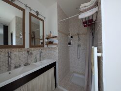 Elle comprend une entrée avec placard, un spacieux séjour-salon de 50m2 avec poêle à bois, une cuisine ouverte donnant sur une terrasse couverte, un bureau, une buanderie, 2 chambres avec salle d'eau individuelle, un wc et une suite parentale avec dressing et salle d'eau.