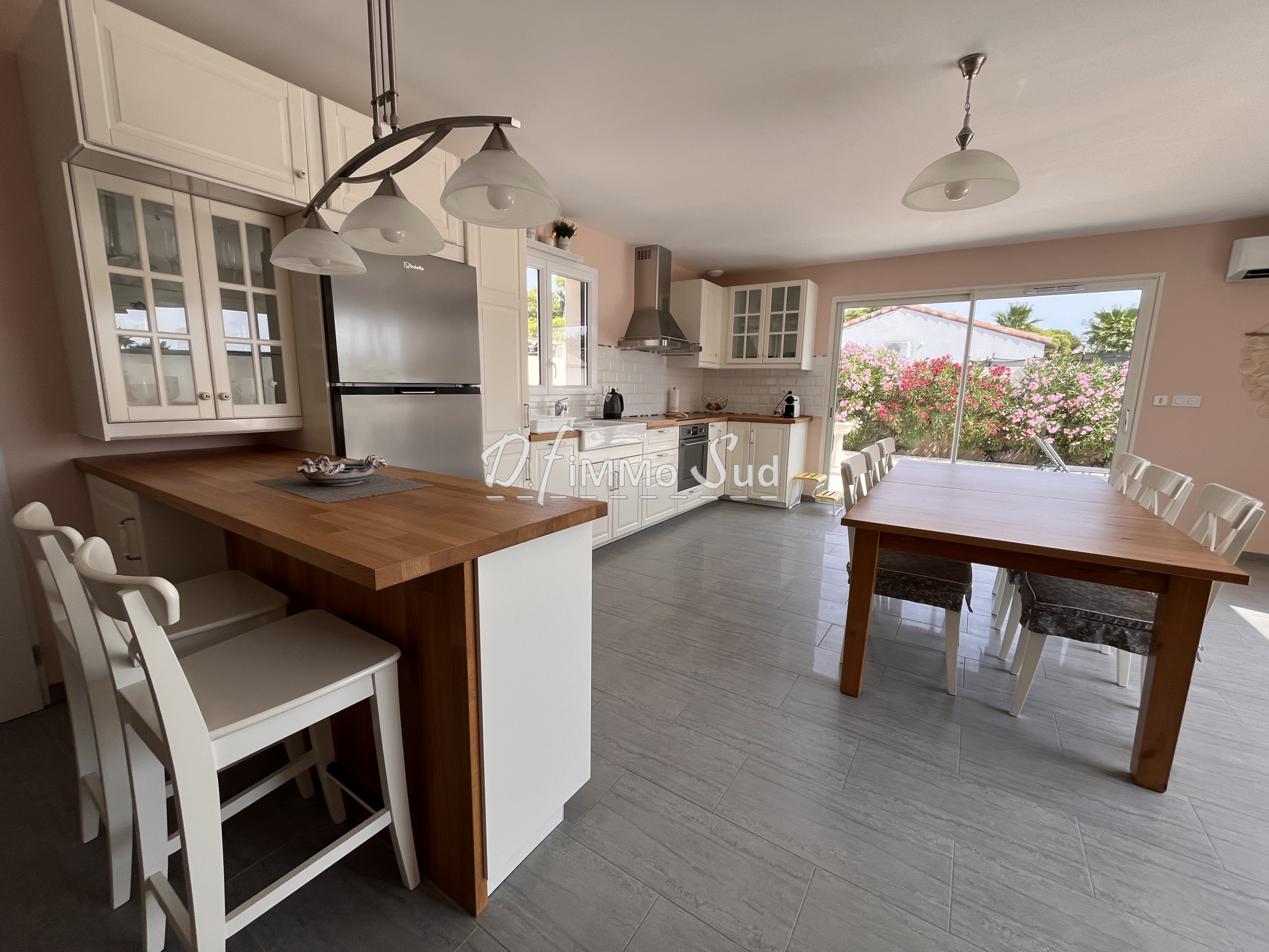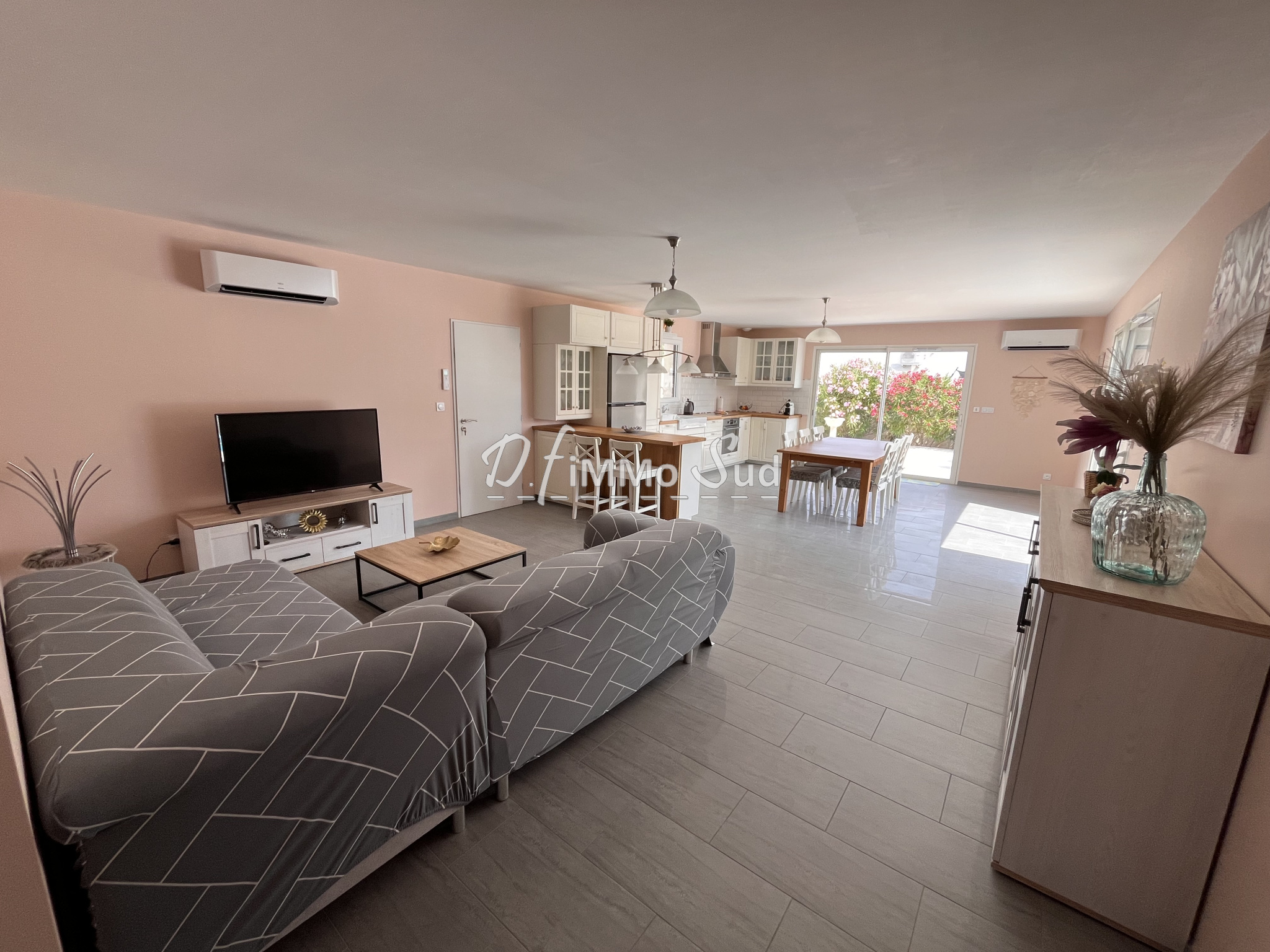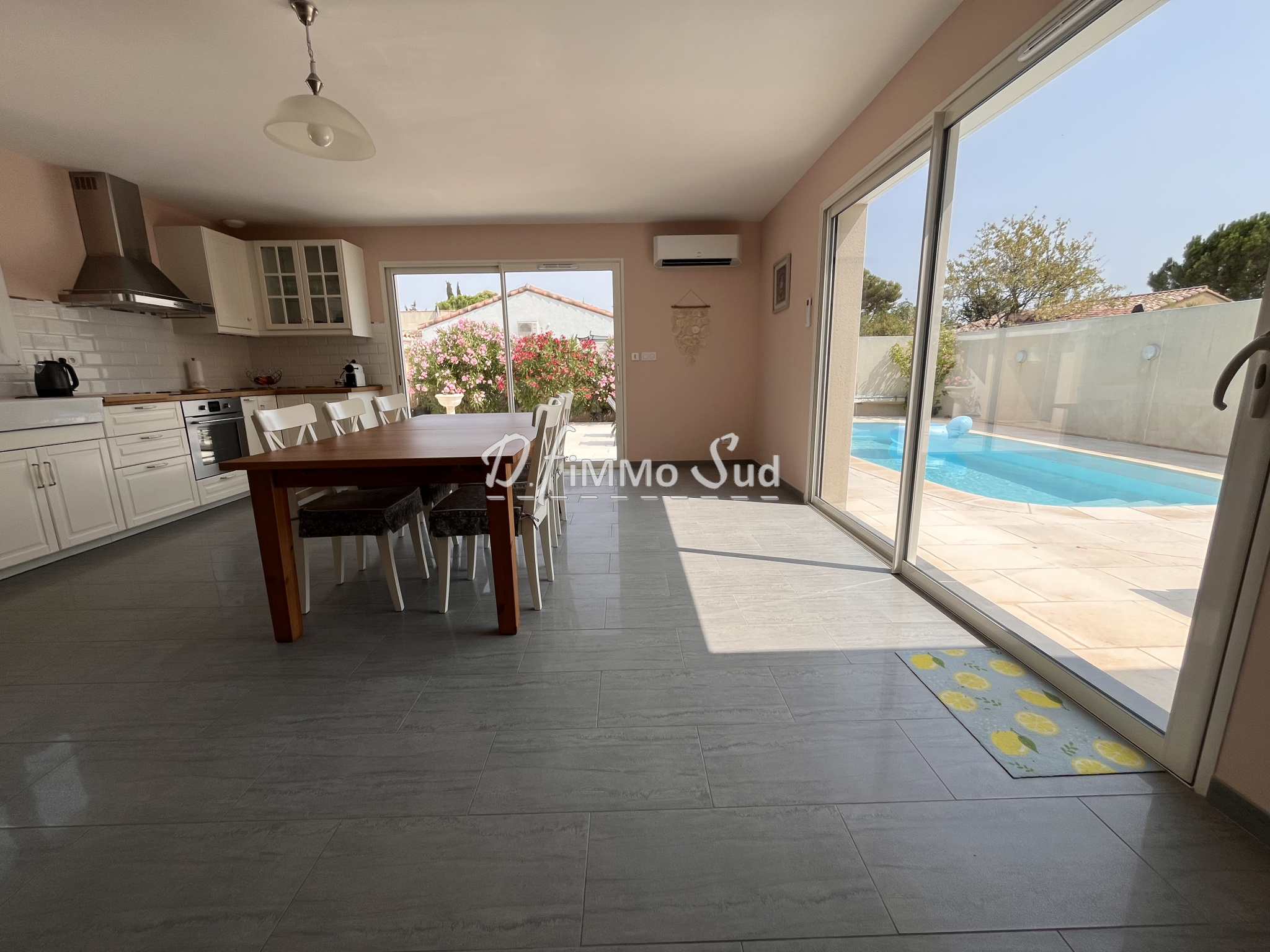 villa plain pied récente (construite en 2020) composée d'une grande pièce de vie; de 4 chambres; d'une buanderie et 1 garage isolé et carrelé. Excellentes prestations: climatisation réversible; RT 2012; ballon thermodynamique; volets roulants électriques. Libre sur 3 faces; bel espace extérieur sans vis à vis et dans un environnement calme. Vue agréable sur la nature environnante. Pour plus d'informations, contactez le 06 82 57 88 94.