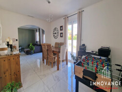 GRABELS - Villa quatre pièces de plain-pied entièrement rénovée d'environ 100 m² sur une parcelle de 633 m² située dans un quartier résidentiel au calme. Elle se compose d'une entrée, d'un salon séjour lumineux, d'une cuisine indépendante aménagée et équipée SMEG donnant sur la piscine, trois chambres, une salle d'eau et un cellier. Vous disposerez d'un grand garage de 34 m² et de deux places de parking intérieur. A découvrir des prestations de qualité : Climatisation gainable sur l'ensemble du bien, isolation par l'extérieur, portail électrique, cuisine d'été, piscine 8X4 au sel... Aucuns travaux à prévoir. Pour plus d'informations, n'hésitez pas à contacter votre conseiller Immovance.