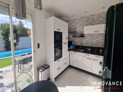 GRABELS - Villa quatre pièces de plain-pied entièrement rénovée d'environ 100 m² sur une parcelle de 633 m² située dans un quartier résidentiel au calme. Elle se compose d'une entrée, d'un salon séjour lumineux, d'une cuisine indépendante aménagée et équipée SMEG donnant sur la piscine, trois chambres, une salle d'eau et un cellier. Vous disposerez d'un grand garage de 34 m² et de deux places de parking intérieur. A découvrir des prestations de qualité : Climatisation gainable sur l'ensemble du bien, isolation par l'extérieur, portail électrique, cuisine d'été, piscine 8X4 au sel... Aucuns travaux à prévoir. Pour plus d'informations, n'hésitez pas à contacter votre conseiller Immovance.