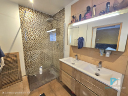 L'agence David Immobilier vous propose, Située au calme, hors lotissement, cette belle villa de plain-pied vous accueille sur la commune de Montblanc, à seulement quelques minutes des accès A75 et A9, offrant ainsi une localisation idéale entre Béziers, Pézenas, Agde et les plages. Construite en 2015, elle offre 125 m2 habitables sur un terrain de 858 m2, avec une conception moderne et une construction de qualité, parfaitement entretenue. Dès l'entrée, on découvre une superbe pièce de vie de 58 m2, lumineuse et conviviale, composée d'une cuisine entièrement équipée ouverte sur un vaste salon/salle à manger. Les deux baies vitrées à galandage et les ouvertures traversantes offrent une belle clarté tout au long de la journée et un accès direct à l'extérieur. La maison, conçue en L, permet une séparation naturelle entre les espaces jour et nuit, apportant confort et intimité. La partie nuit se compose de trois chambres, dont une élégante suite parentale de 26 m2, avec dressing, douche à l'italienne et baignoire balnéothérapie. Les deux autres chambres, l'une de 14 m2 avec baie vitrée et l'autre de 10,70 m2, bénéficient d'une seconde salle de bain avec baignoire ainsi que d'un WC indépendant doté d'un lave-mains. Le terrain, entièrement hors lotissement et très agréable, offre de multiples possibilités : création d'une grande terrasse, aménagements paysagers, installation d'une piscine... Tout est réalisable grâce à sa surface généreuse et facilement exploitable. C'est d'ailleurs le seul élément restant à personnaliser, permettant aux futurs propriétaires de le modeler selon leurs envies. Une emprise est également déjà prévue pour la construction d'un garage sur le côté de la maison, si vous souhaitez compléter l'ensemble. En résumé, une maison récente, bien pensée et lumineuse, dans un environnement calme et recherché, avec un beau potentiel extérieur pour en faire un lieu de vie unique et à votre image.