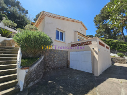 Confortable villa indépendante de 75 m2 bénéficiant d'une très belle vue mer, située au calme, à deux pas des plages et des commerces. Implantée sur un terrain de 650 m2, la propriété dispose de plusieurs terrasses, dont une grande terrasse suspendue de 18 m2 offrant une superbe vue mer. La villa principale, en pleine vue mer, se compose d'un séjour lumineux ouvert sur la terrasse, d'une cuisine accessible depuis le séjour, de trois chambres, d'une salle d'eau et de WC séparés. Un bungalow indépendant de 24 m2, également en pleine vue mer, comprend une chambre, un coin cuisine et une salle d'eau. Une studette indépendante de 11 m2 complète l'ensemble. Terrain piscinnable, entièrement clos par portail privé, nombreuses places de stationnement, garage fermé et pièces annexes. Les informations sur les risques auxquels ce bien est exposé sont disponibles sur le site Géorisques : http://www.georisques.gouv.fr