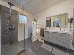 Dès l'entrée, on découvre de beaux volumes et des finitions soignées. Le premier étage accueille une vaste pièce de vie baignée de lumière, avec vue sur le canelot et la piscine. Cet espace convivial s'ouvre sur une agréable terrasse, parfaite pour profiter des fins de journées ensoleillées. Une suite parentale vient compléter ce niveau.
