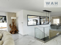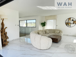 Au rez-de-chaussée vous disposerez d'une entrée desservant trois chambres, une salle d'eau, un WC indépendant ainsi qu'un double garage À l'étage vous découvrirez un séjour lumineux avec une cuisine ouverte entièrement équipée, un WC indépendant ainsi qu'une suite parentale composée d'une salle de bain et d'un dressing Cet espace de vie bénéficie d'un accès direct à la piscine et offre une vue exceptionnelle sur l'environnement La villa propose des prestations et des matériaux haut de gamme notamment des baies vitrées à galandage ainsi qu'une climatisation gainable assurant confort et modernité. Une constructuion neuve sous garantie decennale.