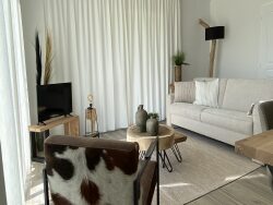 Le N°7 dispose de deux chambres et d'une grande cuisine/salon/salle à manger ouverte et aérée. La cuisine est entièrement équipée. Salle de bain et WC séparés. Salle de rangement séparée avec entrée laveuse/sécheuse