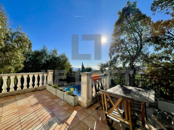 Nichée sur les hauteurs très prisées de Saint-Aygulf, cette magnifique villa provençale vous séduira par son environnement calme, sa vue mer exceptionnelle et son charme authentique. D'une superficie d'environ 140 m2 habitables, la villa s'élève sur deux niveaux et offre des volumes confortables et lumineux. Au rez-de-chaussée, vous découvrirez une cuisine ouverte sur un séjour avec cheminée, baigné de lumière, et s'ouvrant sur une très belle terrasse avec vue mer, idéale pour vos moments de détente. Ce niveau comprend également trois chambres, dont une particulièrement volumineuse bénéficiant d'une terrasse privative avec vue mer, une salle de bain et des toilettes indépendants. En rez-de-jardin, l'espace nuit se prolonge avec deux chambres supplémentaires, une salle de bain avec douche, des toilettes indépendants ainsi qu'une cave. Implantée sur une parcelle de plus de 1 000 m2, joliment arborée, la propriété dispose d'une piscine traditionnelle, parfaite pour profiter pleinement du climat méditerranéen. Un garage et une pièce de rangement complètent ce bien rare. Un véritable havre de paix avec vue mer, alliant charme provençal et cadre d'exception. À découvrir sans tarder.