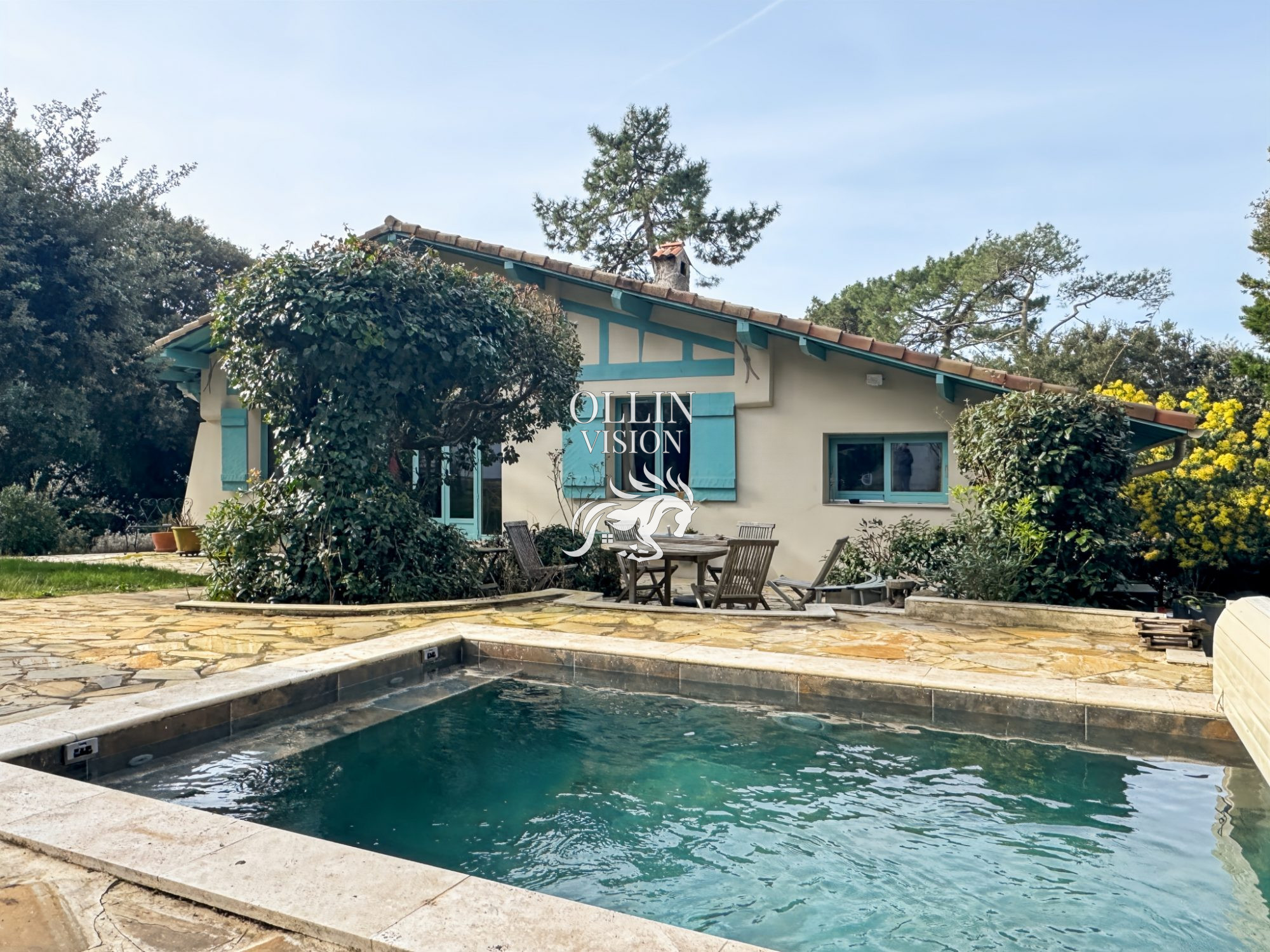 Nichée sur les hauteurs, la villa offre une piscine chaufée avec vue sur le bassin d'Arcachon et le Cap Ferret, une belle paillote ainsi qu'une terrasse, toutes deux chauffées, sur un jardin de 942m2 paysagé avec arrosage automatique.