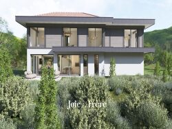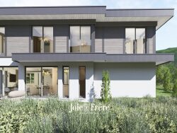 Bâtie par le constructeur Eden-Home, celle-ci présente des caractéristiques énergétiques remarquables durant l'intégralité de son cycle (faible consommation, bois local...). En outre, le bâti est dit 'invers', c'est-à-dire que les pièces de vie sont à l'étage, autorisant d'éparses vues lac et montagnes. Le projet, 'largement' budgété, demeure modifiable selon la volonté des futurs acquéreurs.