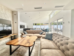 Séjour lumineux ouvert sur l'extérieur.