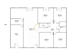 La maison est composée d'un séjour cuisine de 42m² donnant sur une terrasse sans vis à vis, d'une buanderie, de 4 chambres d'environ 11m², d'une pièce de 14m² (ancien garage), d'une salle d'eau avec WC + des WC séparés. Sur un terrain plat, au calme, avec carport pour la voiture.